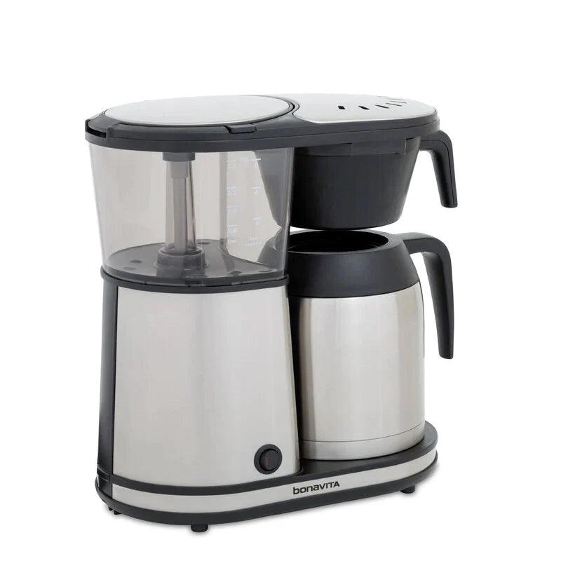 Brew café-quality coffee at home with the Bonavita 8-Cup One-Touch Thermal Carafe Coffee Brewer, an SCA-certified drip brewer designed for coffee enthusiasts. This powerful machine brews up to 8 cups (1.2 liters) in just 6 minutes, delivering rich, balanced flavours with precise temperature control and even extraction.
