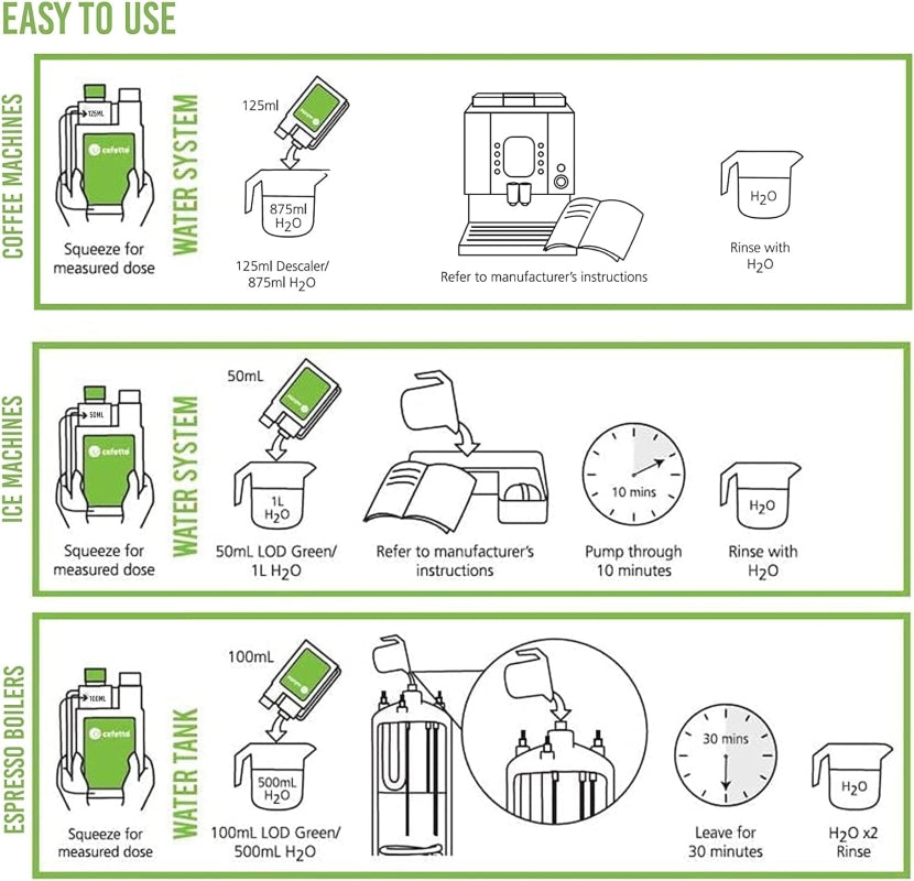 Safeguard your espresso machine with Cafetto LOD Liquid Organic Descaler - 5 Litre, an organically certified concentrated liquid for effective decalcification of water tanks and coffee brewing equipment. This eco-friendly solution removes water scale from boilers, coffee lines, and milk delivery systems, ensuring optimal performance and flavour. Compatible with brands like Breville, De'Longhi, Jura, Krups, Miele, Nespresso, Bosch, and Sunbeam making it a top choice for professional and home baristas.